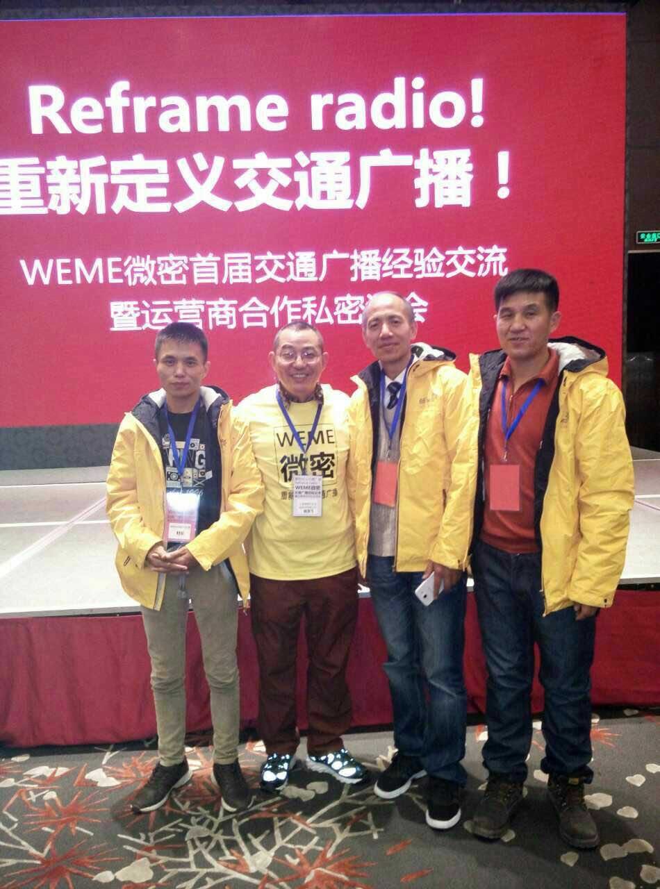 O líder do ecossistema da Goose Q, Zhao Longfei, com parceiros da indústria na apresentação da Estação de Rádio Reframe, maio de 2015